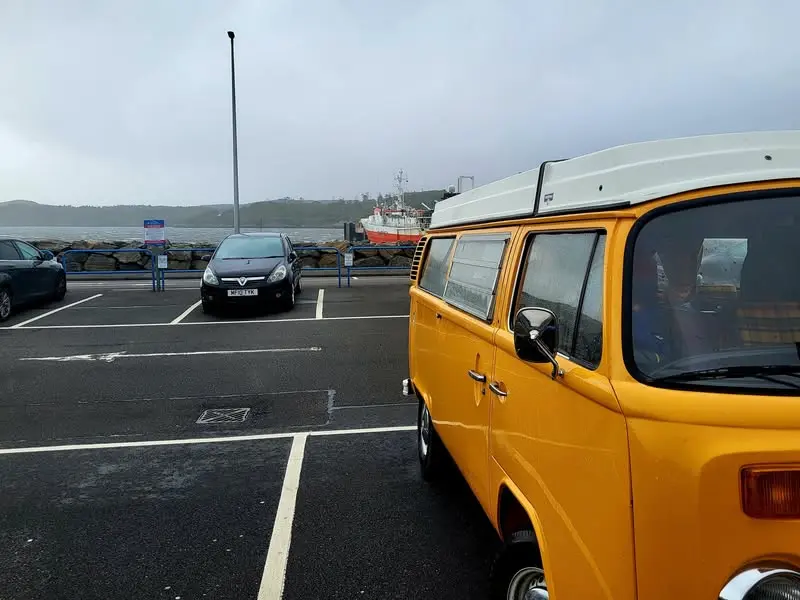 Puis direction Stornoway pour essayer de trouver un arrangement avec la compagnie de ferry. Le premier trajet qu'ils nous proposent, c'est... dimanche ! 😶🤯 Dans 3 jours, sachant qu'ensuite il faut encore redescendre avec Casimir plus de 1000 bornes ! Moi je dis, c'est No Way ! 😃