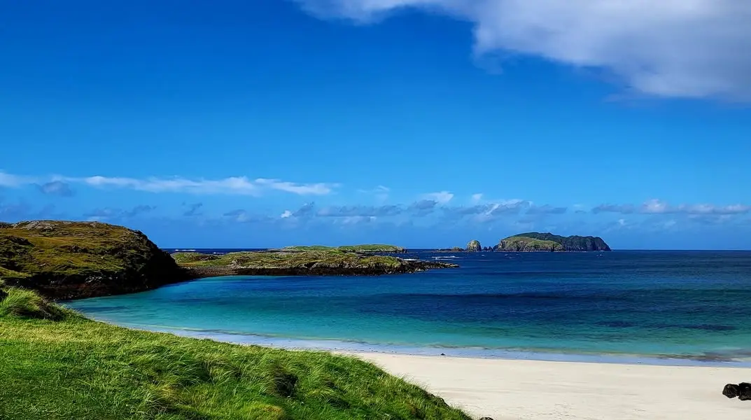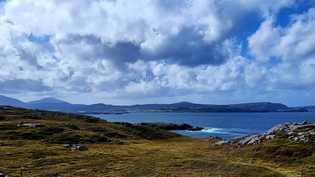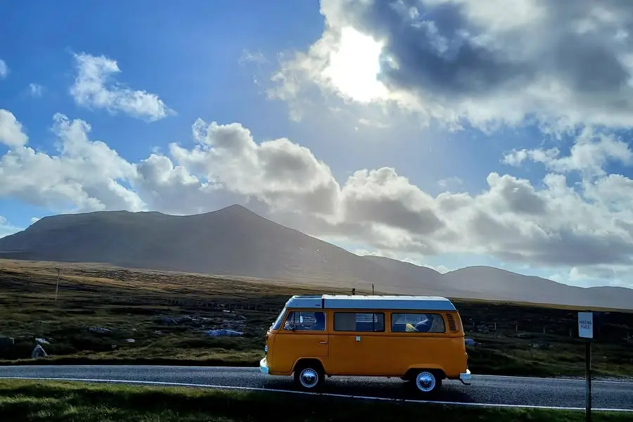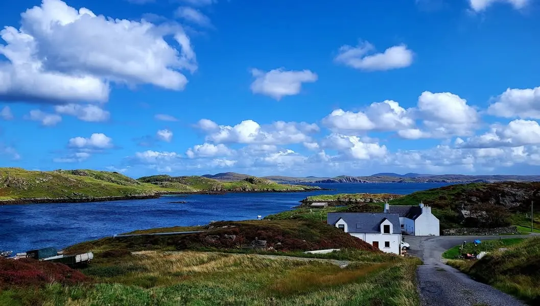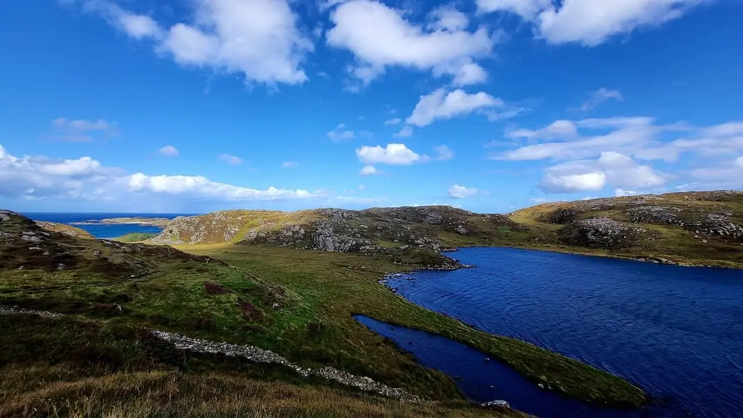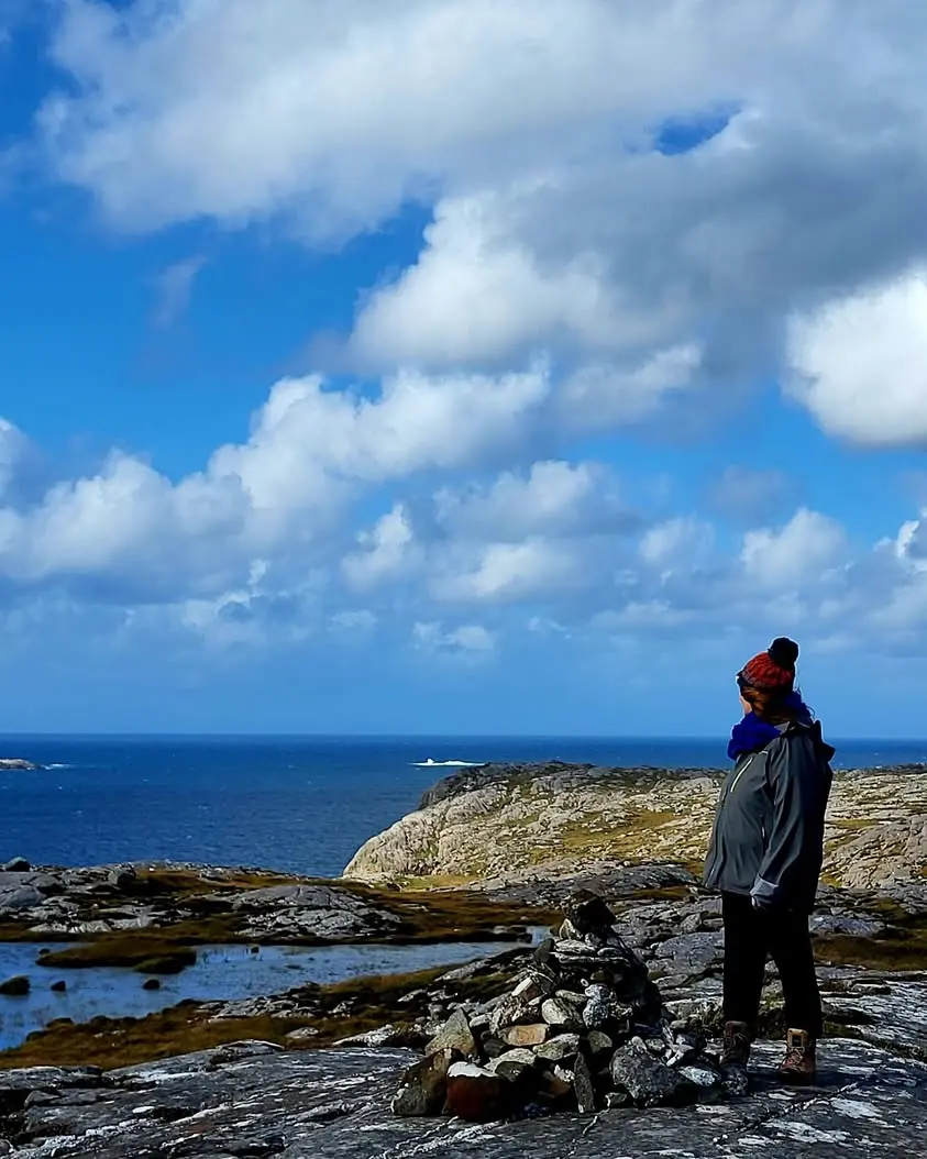 On poursuit direction Great Bernera. Cette petite île est reliée à Lewis par un pont construit en 1953, ce qui la rend facilement accessible en voiture (voire en combi 😉). Elle compte 250 habitants. Mais ce qui nous a amené ici, c'est le Great Bernara trail, boucle de 12km offrant des vues imprenables sur l’océan et les îles voisines.
