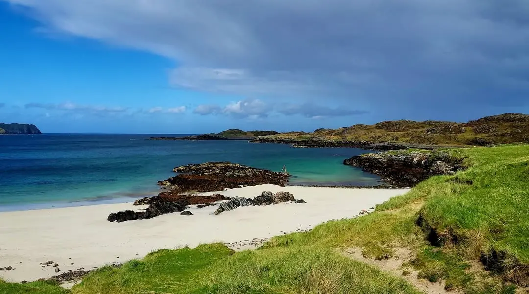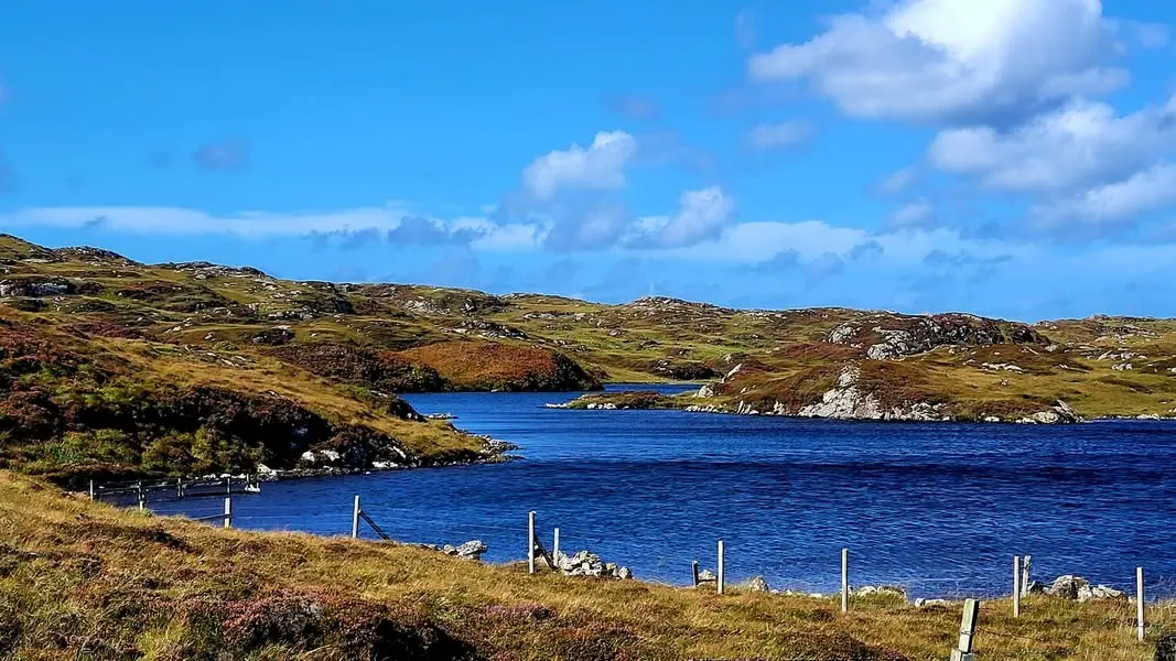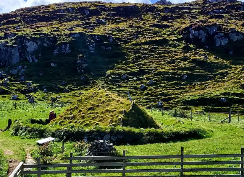 Tout commence gentiment en suivant la route durant 5km, jusqu'à la superbe plage de Bostadh. Aucune difficulté... jusque-là 🙂 Une reconstitution d'une maison de l'âge de fer permet de découvrir comment vivaient ses habitants il y a plus de 2000 ans.