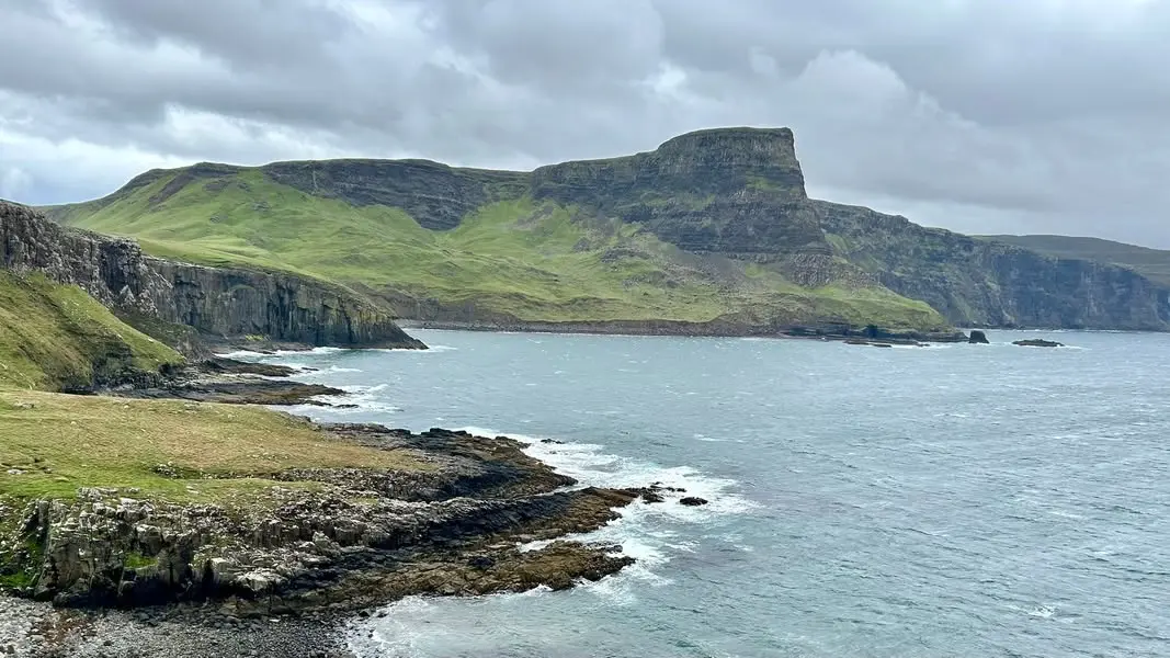 Suite de nos aventures écossaises, avec ce matin une « balade » jusqu’au Neist Point. C’est réputé être facile, mais forte de mon expérience d’hier, j’ai enfilé toute fière mes chaussures de rando. Cette fois tout se passerait sans encombres ! Et c’est vraiment ainsi que les choses ont commencé : un chemin balisé sans grande difficulté hormis un dénivelé tout à fait gérable. Ajoutez à cela une vue époustouflante sur l’océan … tout était parfait !