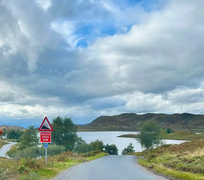 On prend ensuite la route du retour et là ça se complique un chouïa 😳. Après la vallée de Glencoe et Fort william, le problème revient… de plus en plus fort, jusqu’à ce qu’Oli n’arrive plus du tout à passer la troisième vitesse. Là, c’est un peu la panique : on fait du 30 km/h max et les voitures arrivent derrière nous à toute vitesse 😱. Avant l’accident, on fait demi tour pour s’arrêter dans un village où trouver un endroit pour s’abriter en attendant le dépannage.