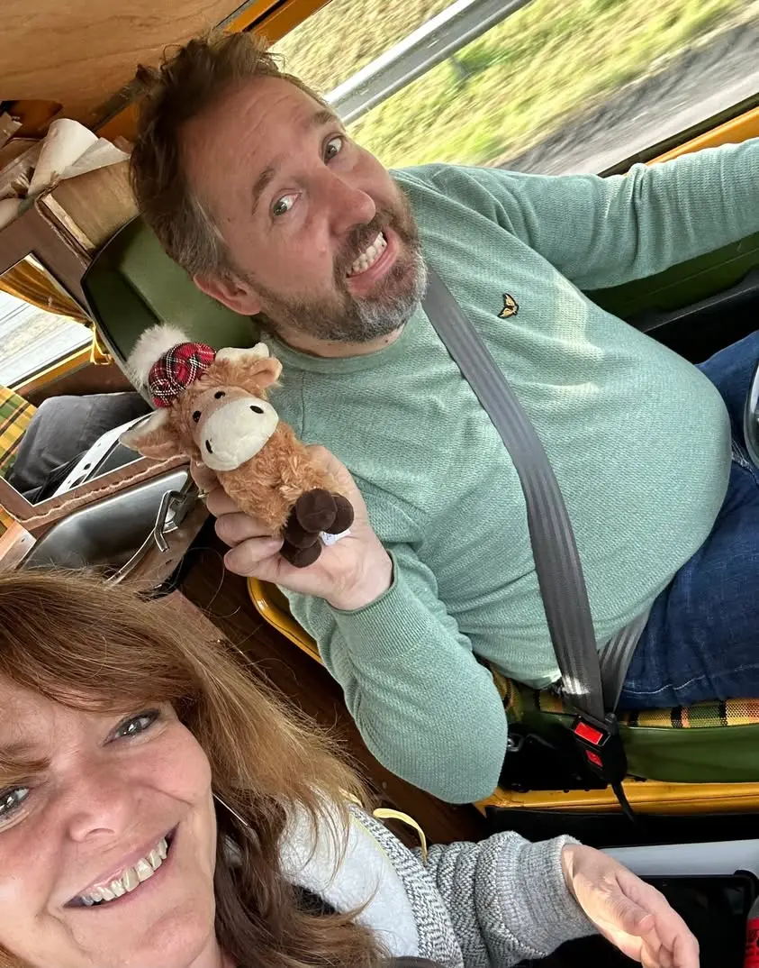 Côté conduite, Oli assure, sans direction assistée évidemment ! Casimir n’est pas très puissant, mais son moteur a été amélioré par notre super garagiste : on peut faire des pointes de 100 km/heure (en descente hein, faut pas rêver 😆), on a réussi à dépasser 3 camions sur les 1000 km d’autoroute, mais surtout on ne rétrograde plus à 30 km/h dans les montées… ce qui, disons-le sans détours, est fort précieux en Écosse 😉
