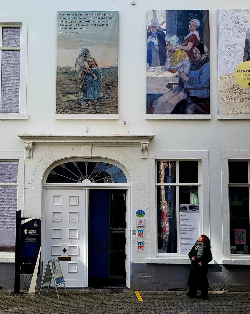 Nous explorons ces diverses facettes à travers un itinéraire qui nous conduit dans les ruelles arpentées par l’artiste au 19e siècle. Du musée Rops à l'Église Saint-Loup (où Baudelaire, ami de Rops, fut victime d'un AVC !), en passant par l'esplanade du Grognon, ou encore par un détour en téléphérique jusqu'à l'esplanade de la citadelle, nous parcourons la capitale wallonne de bas en haut et dans ses moindres recoins
